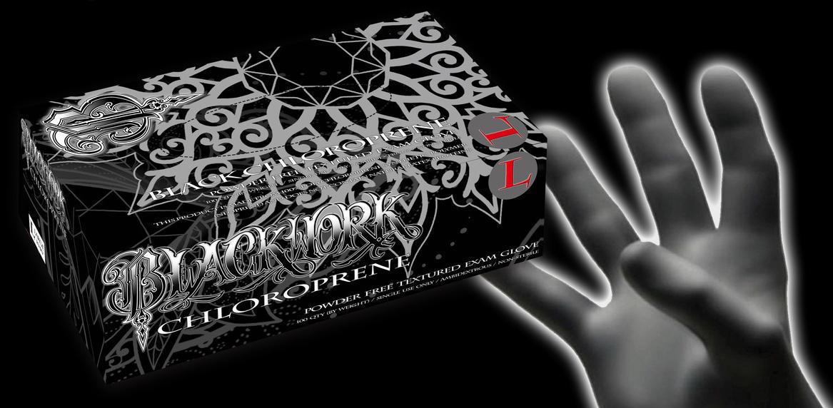 Their new patented Black Chloroprene formula is the most scientifically advanced glove in the Tattoo Industry. Unrivaled protection, Zero resistance, Incredible comfort, and a textured surface with unbelievable tactile sensitivity. Will also go on with wet, sweaty, or clammy hands with zero effort.