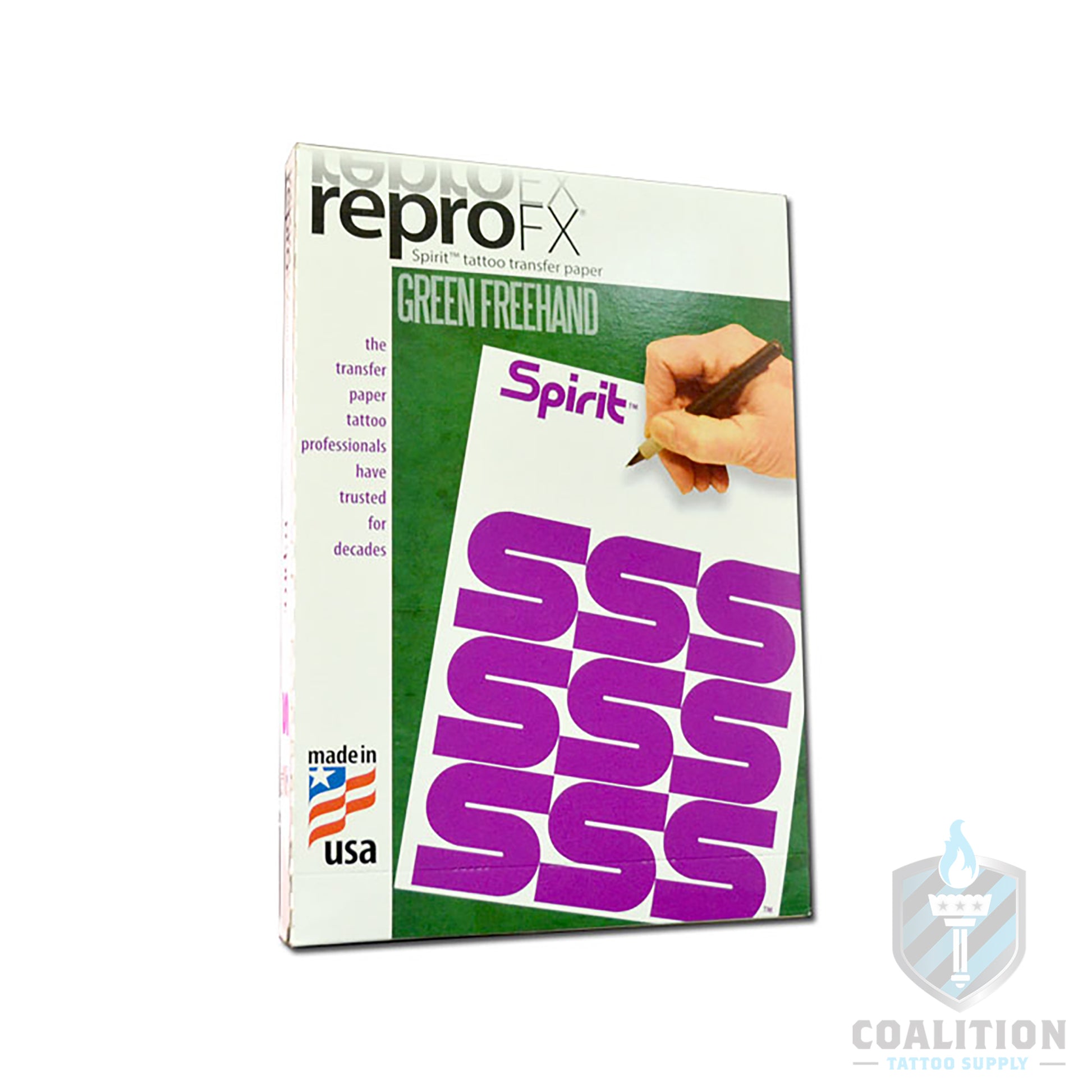 ReproFX Spirit™ Freehand Tattoo Transfer papers are designed for those one of a kind pieces. They took the high visibility purple dye and suspended it in a truly unique wax matrix. This wax blend is butter smooth and extremely responsive to pressure, which allows artists to introduce extreme detail to their stencils. And the ripstop stencil sheet stands up to the most aggressive tracing.