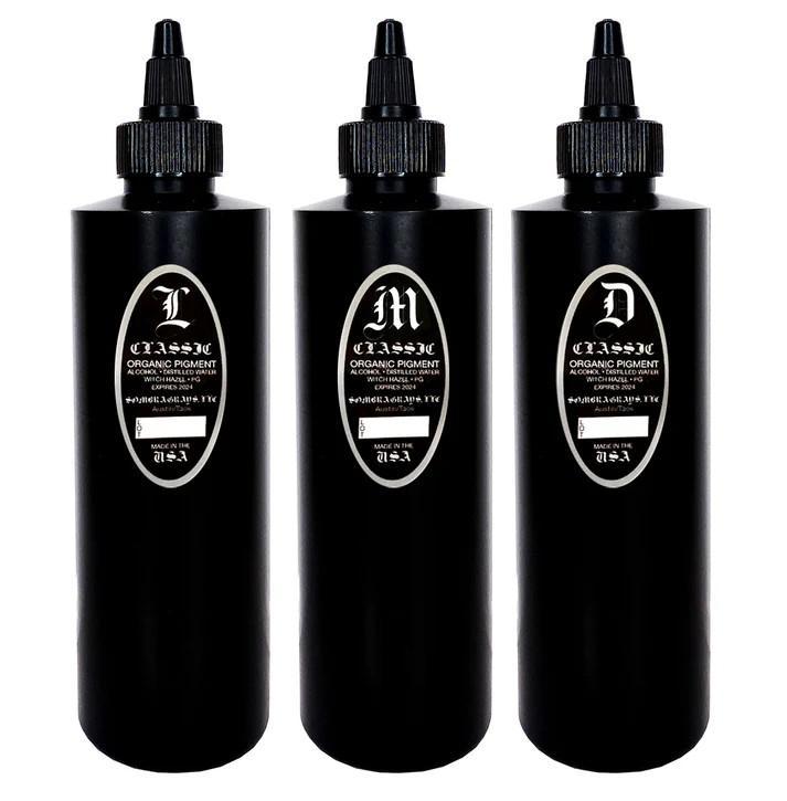 Our classic wash set is as simple as it gets. It’s all you need to produce consistent gray tones with that classic look. Made with the finest quality organic pigments and ingredients available. Formulated for tattooing.